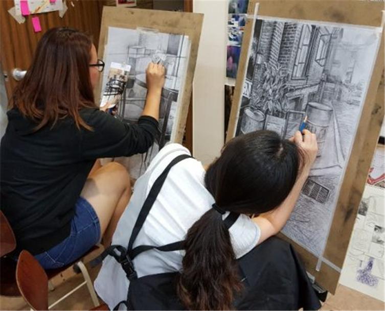 6개월간의 어학 수업기간 중 미국 대학 1학년 Foundation 미술수업 적응을 위한 드로잉 수업을 진행하며 이 수업을 통해 12작품 편입 드로잉 포트폴리오 제작 및 텍사스 주립대학교 미술 2과목을 AP( advanced placement ) 인정해 미국대학 수강신청 시 상급 클래스과목으로 수강신청이 가능하도록 하고 있습니다.