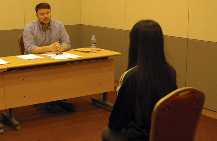 원어민 면접관 2명/ 한국면접관 1명(통역)