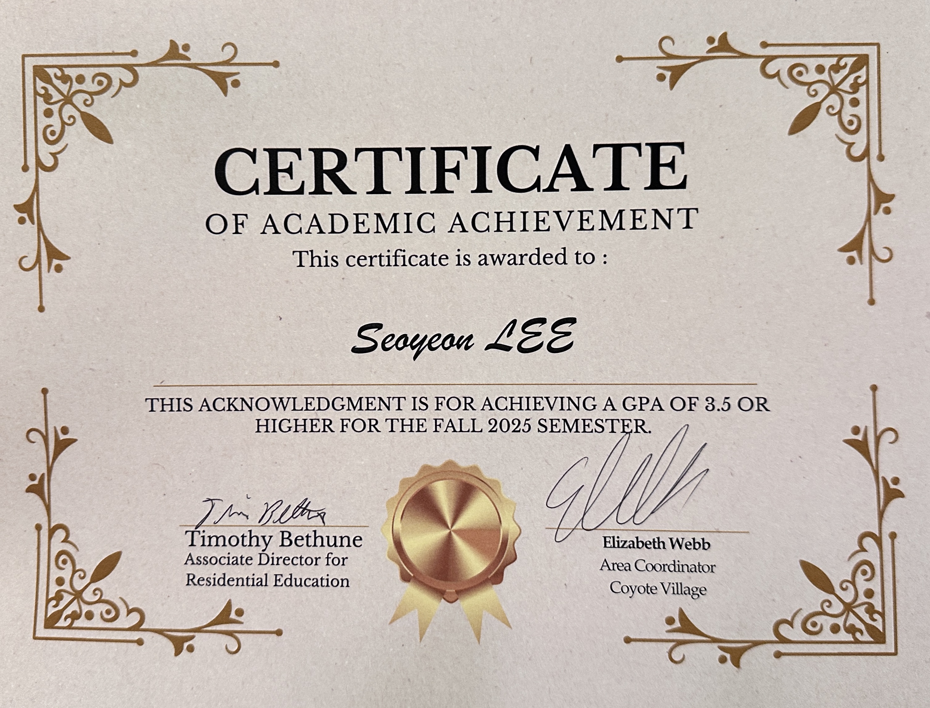 CSUSB 학생 소식입니다. 1학년 재학중인 이서연 학생 소식입니다.